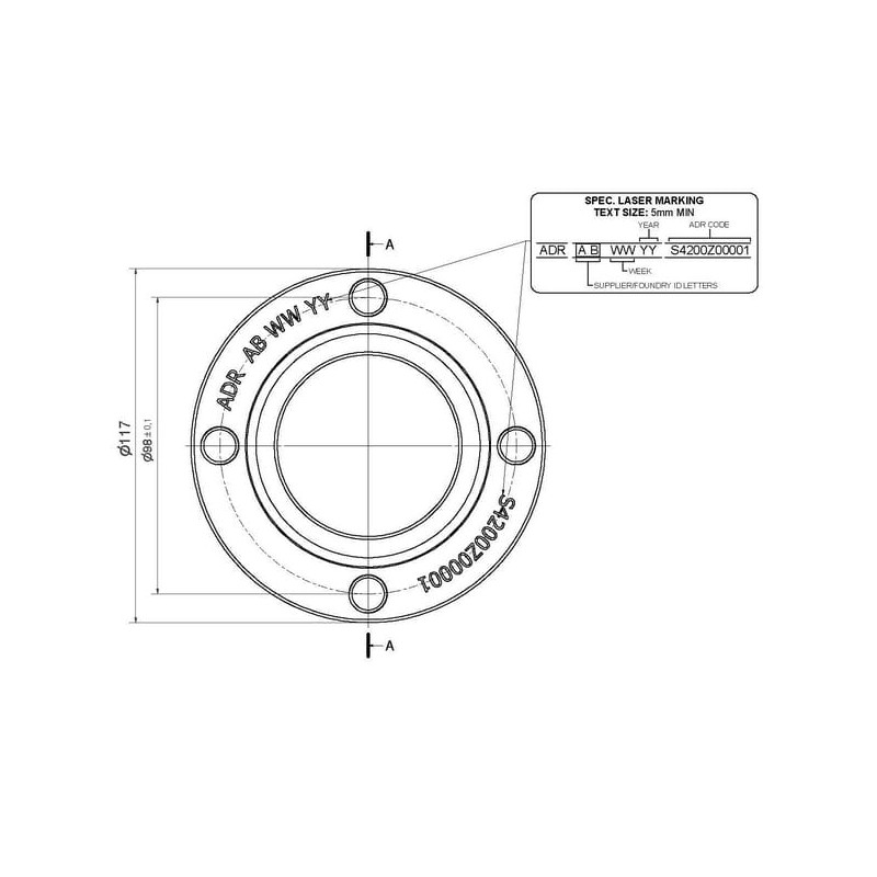 Tvirtinimo skylių / varžtų apskritimo skersmuo98 mm