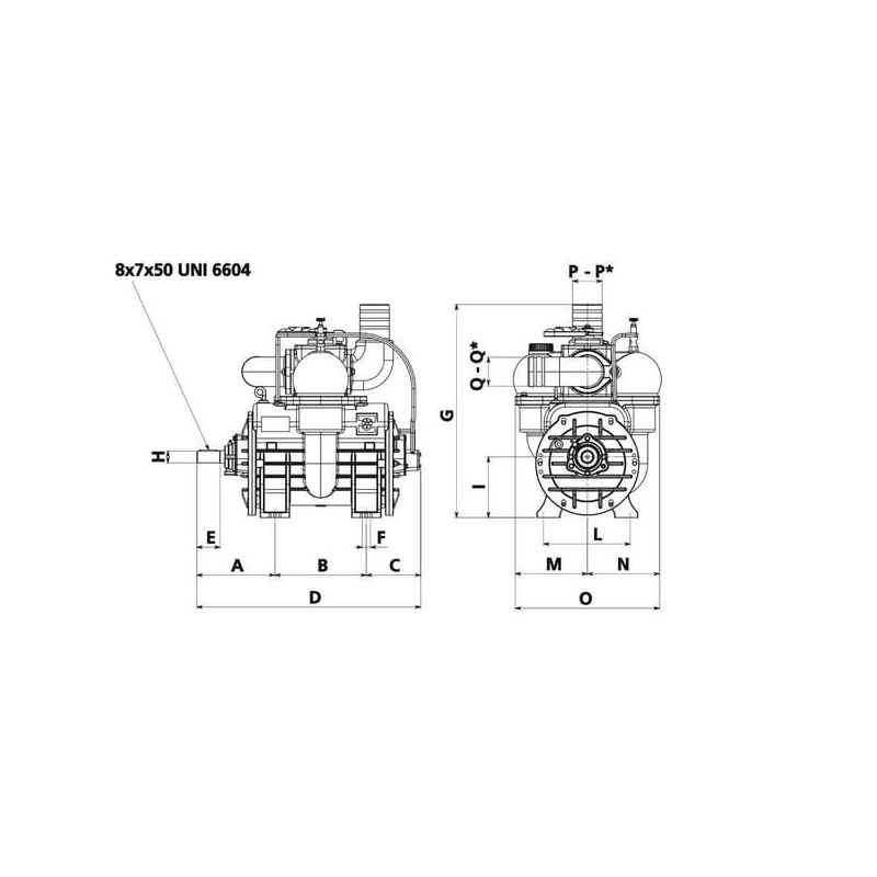 Sudaro: Be slėgio mažinimo vožtuvo (0200013) ir vakuuminio vožtuvo (0155513). Siurbliai tiekiami be tepimo alyvos (BP5070). Be skriemulio.