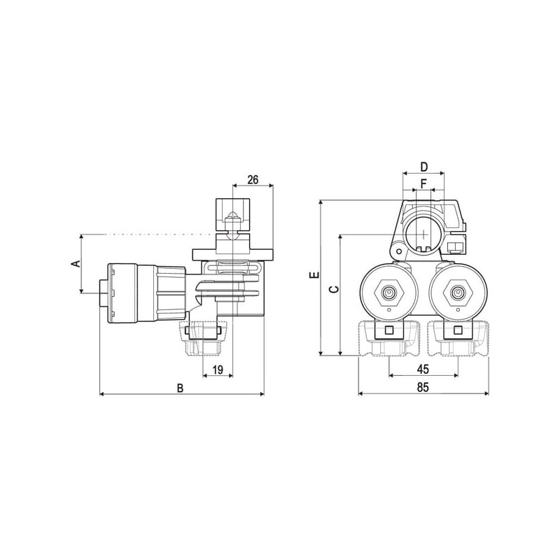 Purkštuko laikiklis 2 krypčių 25 mm Selejet 4063G145A2