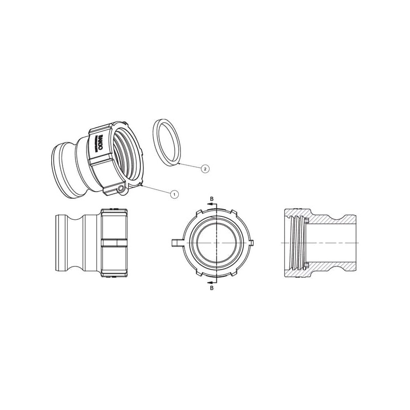 Camlock tipo A tipo 2 colių vidinis sriegis S60x6 polipropilenas TA283QD
