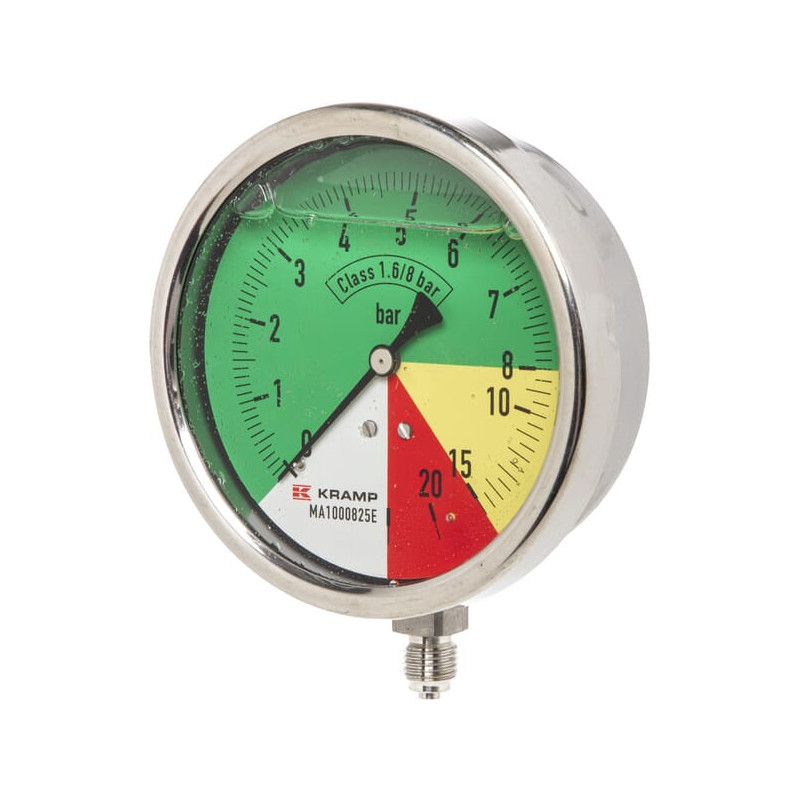 Manometras Ø100mm 0-8-15-25 1/4" BSP apatinis prijungimas MA1000825E
