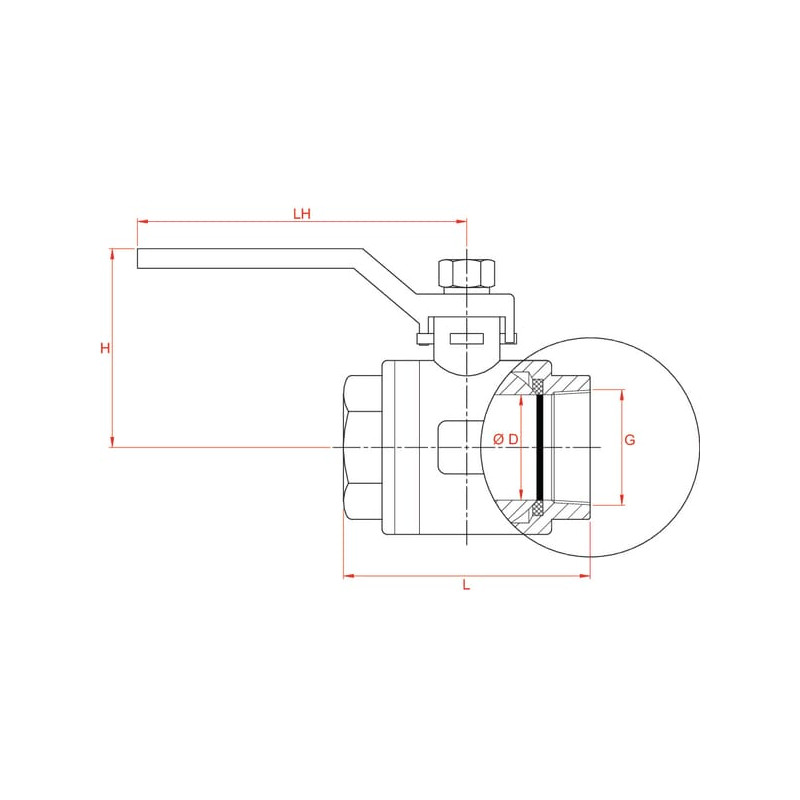 Produkto informacijaDviejų dalių pilno prievado rutulinis vožtuvasTrumpa versijaKūginis sriegis pagal ISO 7-1 ir DIN 2999-1 Su blokuojamomis PTFE sandarinimo detalėmisNerūdijantis plienas 316