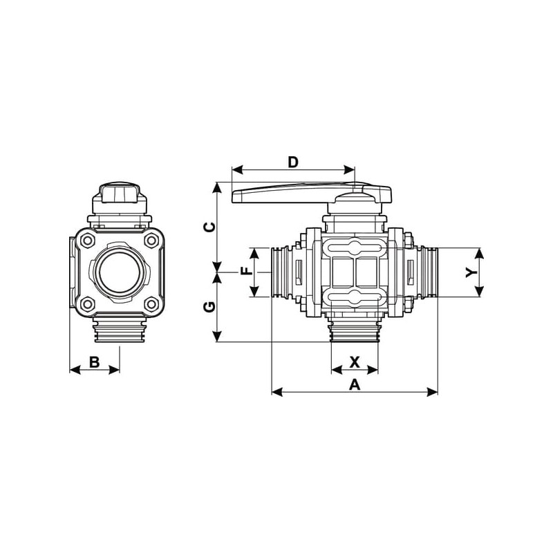 Rutulinis vožtuvas T9 kl., vidurinis, 3 padėčių 453027S99
