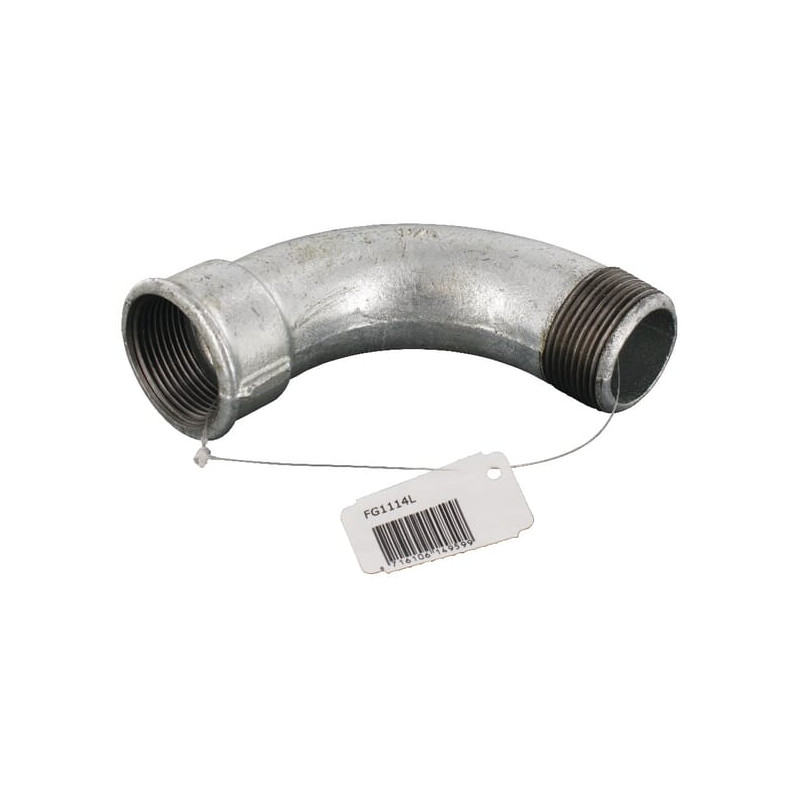 90° alkūnė su vidiniu/vidiniu sriegiu, cinkuota 1 1/4 FG1114L