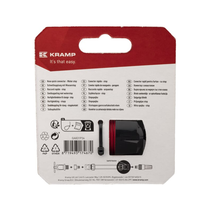 Produkto informacijaPrispaudimo mechanizmo elementai pagaminti iš nerūdijančio plieno • Minkšta rankena ir patogus naudojimas • Tinka visoms vyriškoms sodo sistemų greito prijungimo jungtims