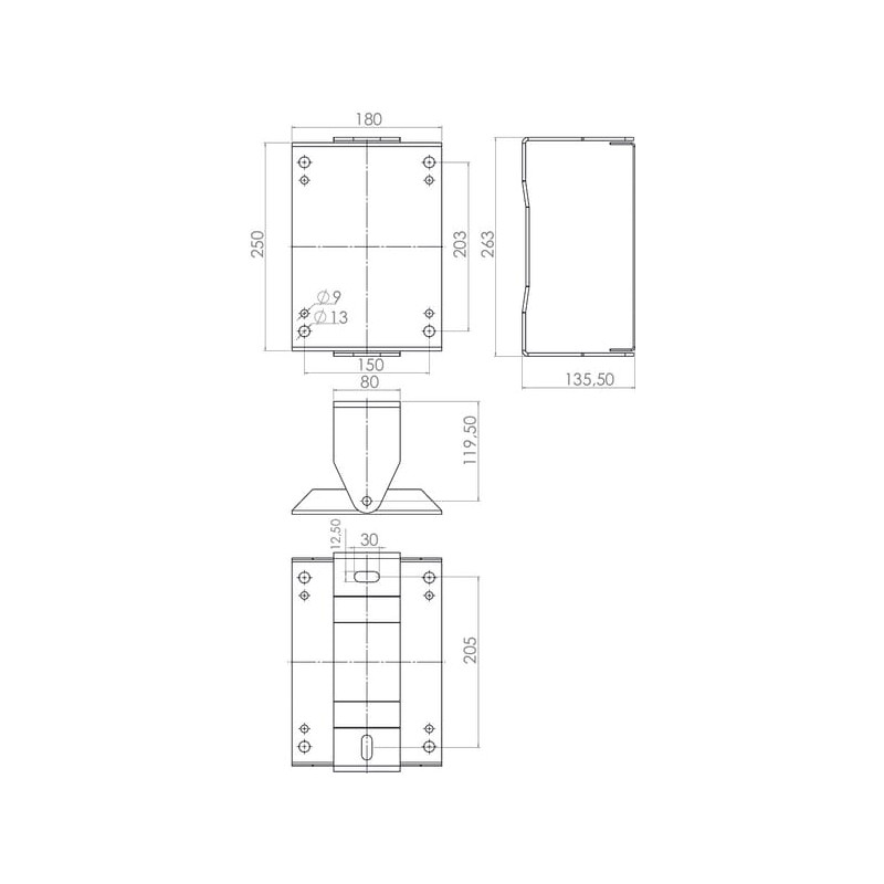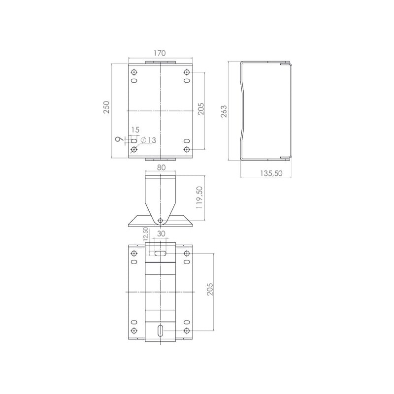 Sieninis pasukamas laikiklis 140x204 mm nerūdijančio plieno HD15