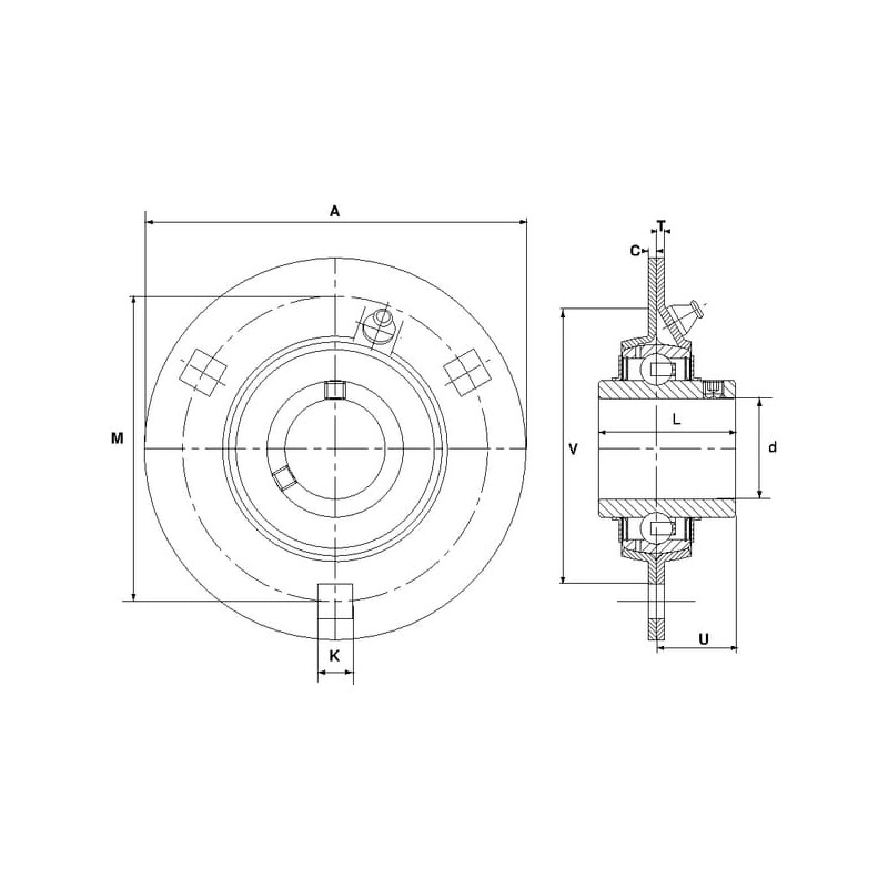 Sudaryta iš 2 korpuso pusiųUžspaudžiamasis guolis