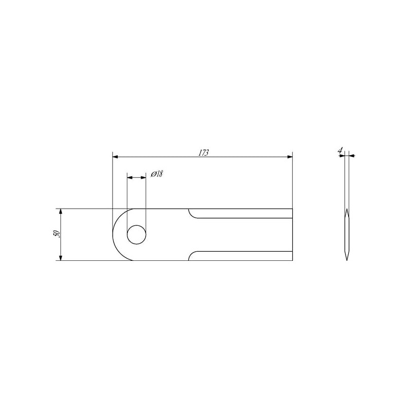 Rotacinis šiaudų smulkintuvo peilis 173x50x4mm Ø 18mm 281401Z