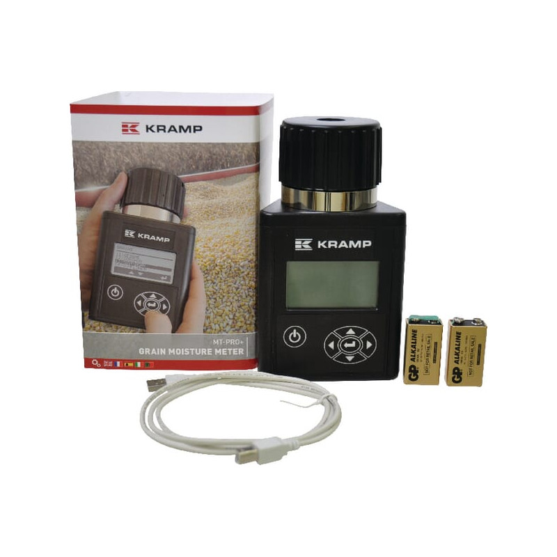 SavybėsAutomatinis temperatūros kompensavimasApšviestas, daugiakalbis ekranasAutomatiškai apskaičiuoja pasirinkto bandymų skaičiaus vidurkįIssaugo vidutinį visų tirtų grūdų kalibravimąTiesioginis verčių, viršijančių ribą ir žemiau jos, nuskaitymasUSB prievadas atnaujinimams2,5 colio LCD ekranas su pasirenkamais dideliais arba standartiniais šriftais, rodo aktyvią funkciją ir leidžia vartotojui slinkti aukštyn ir žemyn per sunumeruotas grūdų skalesEkrano skiriamoji geba: 0,1%Apšviesta mygtuko sąsaja, skirta prasto apšvietimo sąlygomsBaterijos įkrovos indikatorius su įspėjimu esant 15 % talposPlatus drėgmės diapazonas: grūdai 8–35 %; aliejinių augalų sėklos 5–25 %