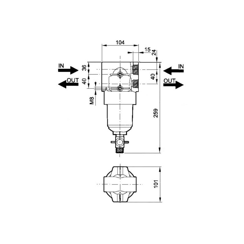 Įmontuotas filtras 1/2 colio 40 l/min 50 akių 50 barų 004630