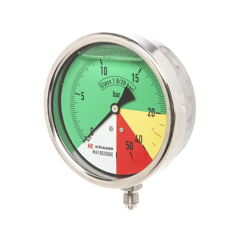 Manometras Ø100mm 0-20-40-60 1/4" BSP apatinis prijungimas MA1002060E