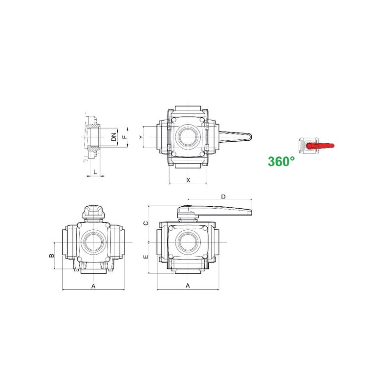 Rutulinis vožtuvas 1 1/2" 12 bar 4 padėčių 453045A66