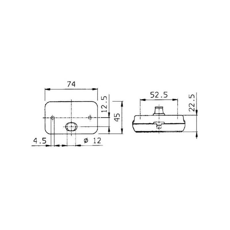 Gabaritinis žibintas, stačiakampis, 12/24V, baltas, tvirtinamas varžtais, 74x22,5x45mm, Jokon 111001001