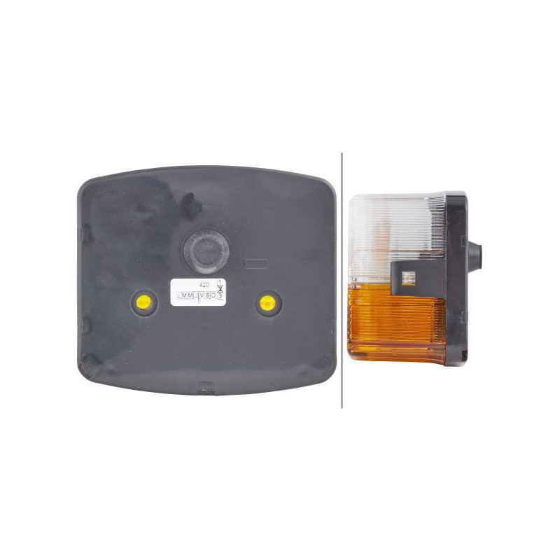 Posūkių ir gabaritinis žibintas RH 21W, kvadratinis, 12V, gintaro/skaidrus, tvirtinamas varžtais, 85x54x95mm, Hella 2BE003182101