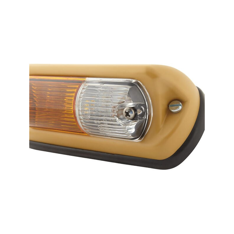 SavybėsMirksintis gabaritinis žibintas priekiniam horizontaliam tvirtinimui - Geltona mirksinti lemputė, skaidrus gabaritinis žibintas - Šviesos lęšis su greitu tvirtinimu - Matmenys: 95 x 90 mm