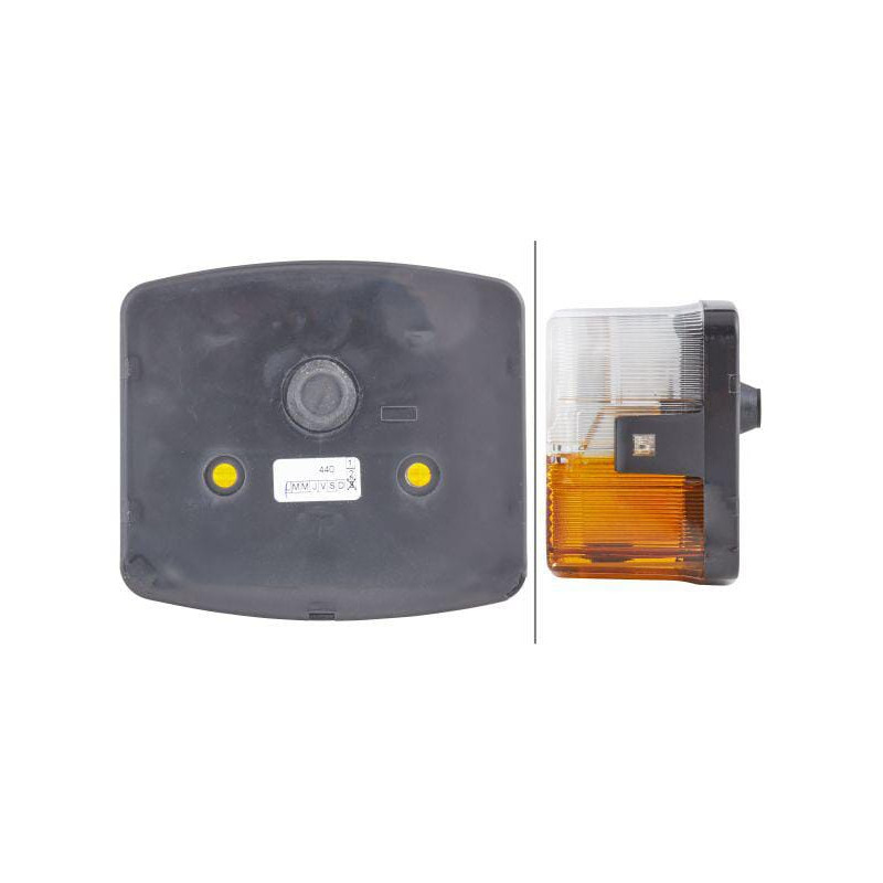 SavybėsMirksintis gabaritinis žibintas priekiniam horizontaliam tvirtinimui - Geltona mirksinti lemputė, skaidrus gabaritinis žibintas - Šviesos lęšis su greitu tvirtinimu - Matmenys: 95 x 90 mm