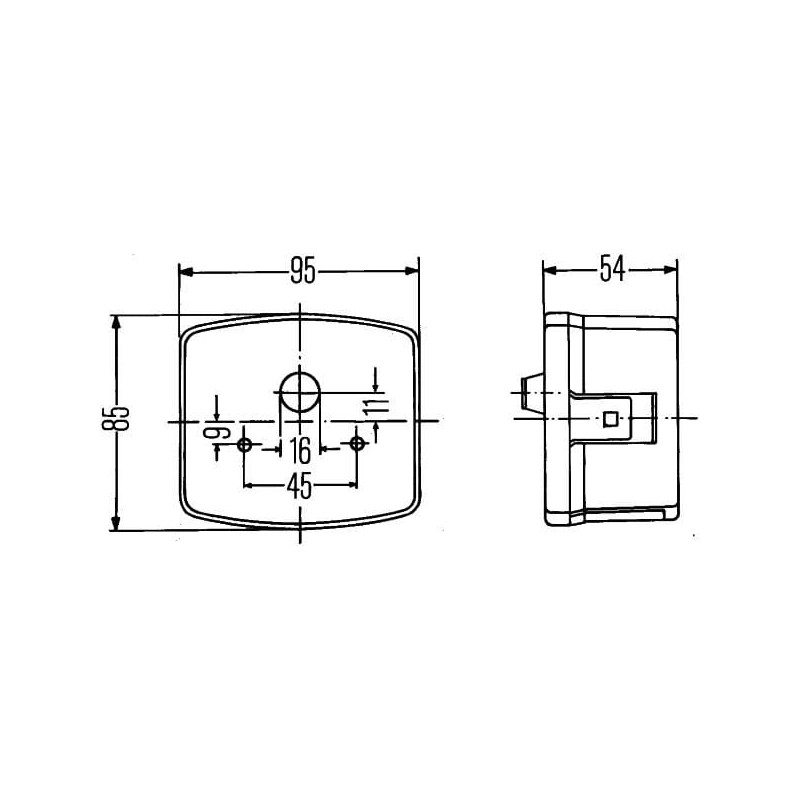 Posūkių ir gabaritinis žibintas kairysis, 21 W, kvadratinis, 12 V, gintaro/skaidrus, tvirtinamas varžtais, 85 x 54 x 95 mm, Hell