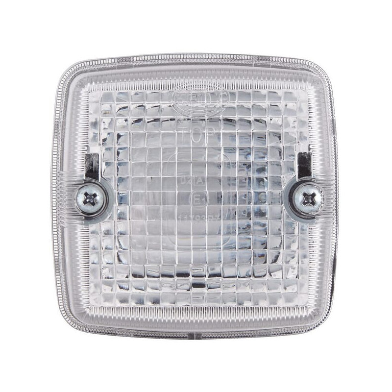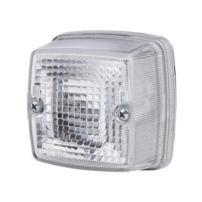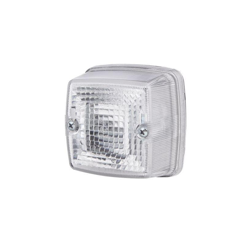Gabaritinis žibintas 5W, kvadratinis, 12/24V, skaidrus/baltas, tvirtinamas varžtais, 84x51x84mm, peilinis kontaktas, Hella 2PF00