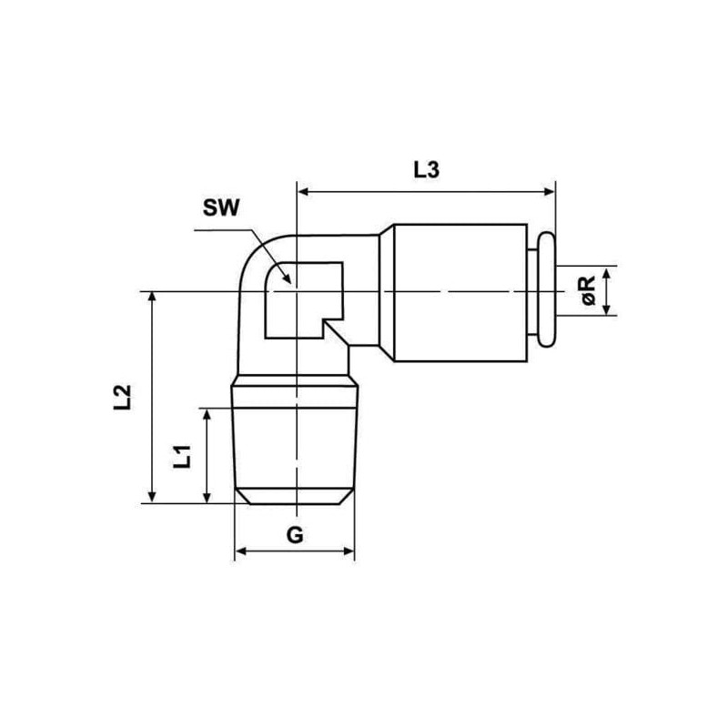 Įspaudžiama jungtis, 6 mm skersmens, 90° išorinis sriegis, 1/8 colio, Kramp CLWS6RK18