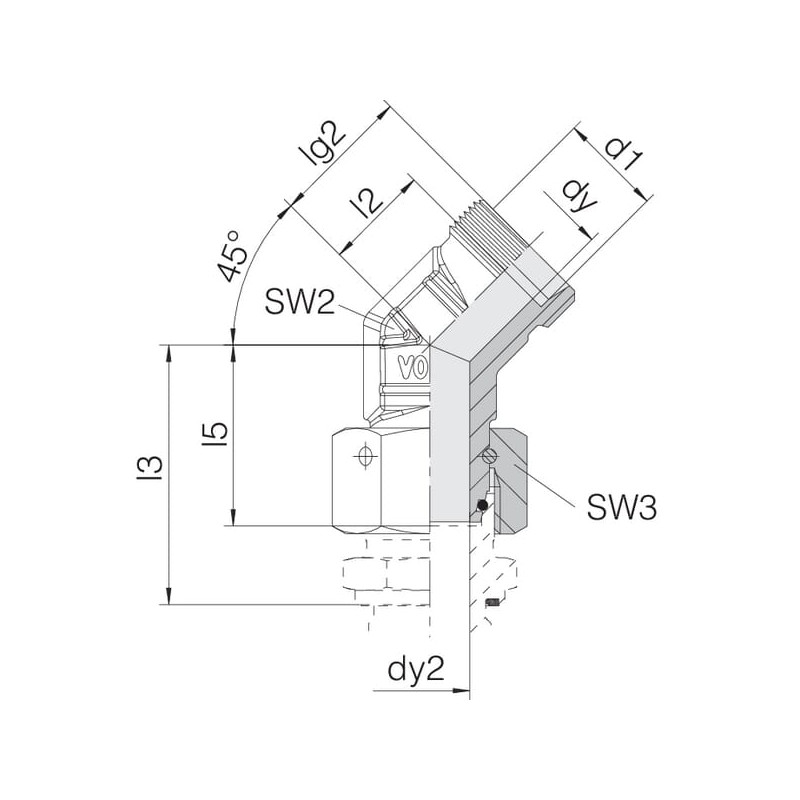 Pjovimo žiedo jungtis 8S, 45° EVSD8S