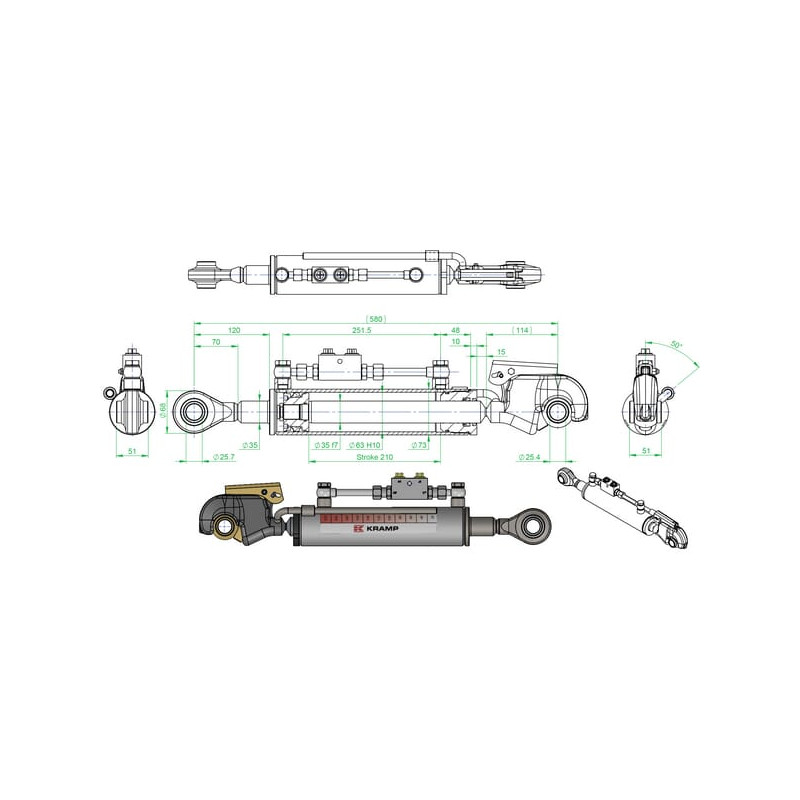 Produkto informacija2 ir 3 kategorijos trijų taškų traukėSu ilgio indikatoriumiTCVNN tipas turi valdomą atbulinį vožtuvąTCVNNE tipas turi valdomą atbulinį vožtuvą ir prailgintą švaistiklio galą traktoriaus pusėje Didžiausia radialinė apkrova: 10 % ašinės apkrovos Terpė: mineralinė alyva, HLP ISO VG 32–ISO VG 46 Terpės grynumas: ISO 4406 22/20/17 arba NAS 9 Visada įsitikinkite, kad hidraulinė viršutinė traukė turi pakankamai judėjimo galimybės traktoriaus pusėje, kad išvengtumėte galimų lūžių ar saugos problemų. Jei reikia, apsvarstykite galimybę naudoti TCVNNE viršutinę traukę su prailgintu švaistiklio galu.