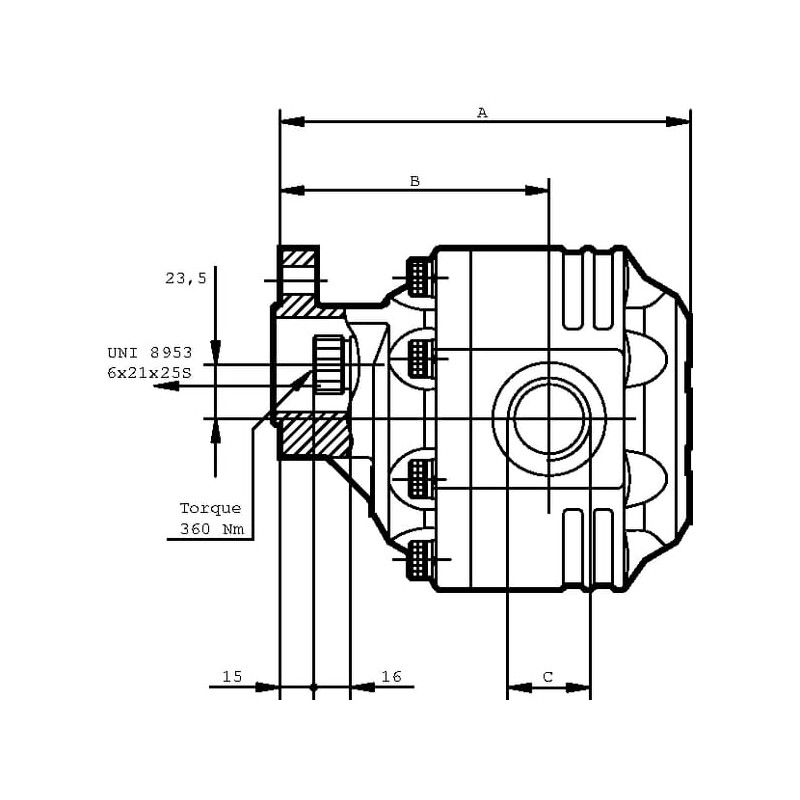 Produkto informacijaDidelis našumas net ir esant mažam greičiuiGalimas tiesioginis montavimas ant kardaninio veleno Įvairios prievadų padėtys Mažas triukšmo lygis Galimas klientui pritaikytas dizainas Adapteris 1 3/8 colio 6 dalių kardaninio veleno profiliui: atraminis guolis SMLF arba SFLF (plius kablio įvorė) Adapteris 9 dalių ZF profiliui: atraminis guolis SR9 (plius kablio įvorė) Kartu su šiais atraminiais guoliais negalima viršyti 300 Nm sukimo momento Kardaninio veleno konsolinis siurblys Pavaros su ZF profiliu