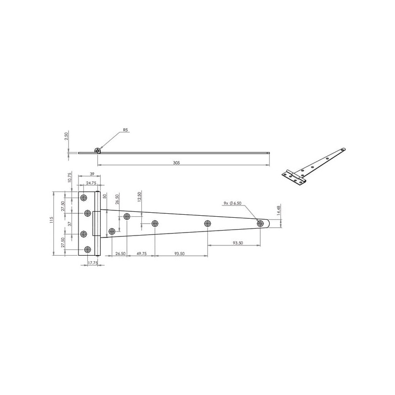 T formos vyris 12"/300 mm, tvirtas, cinkuotas TO4196BG