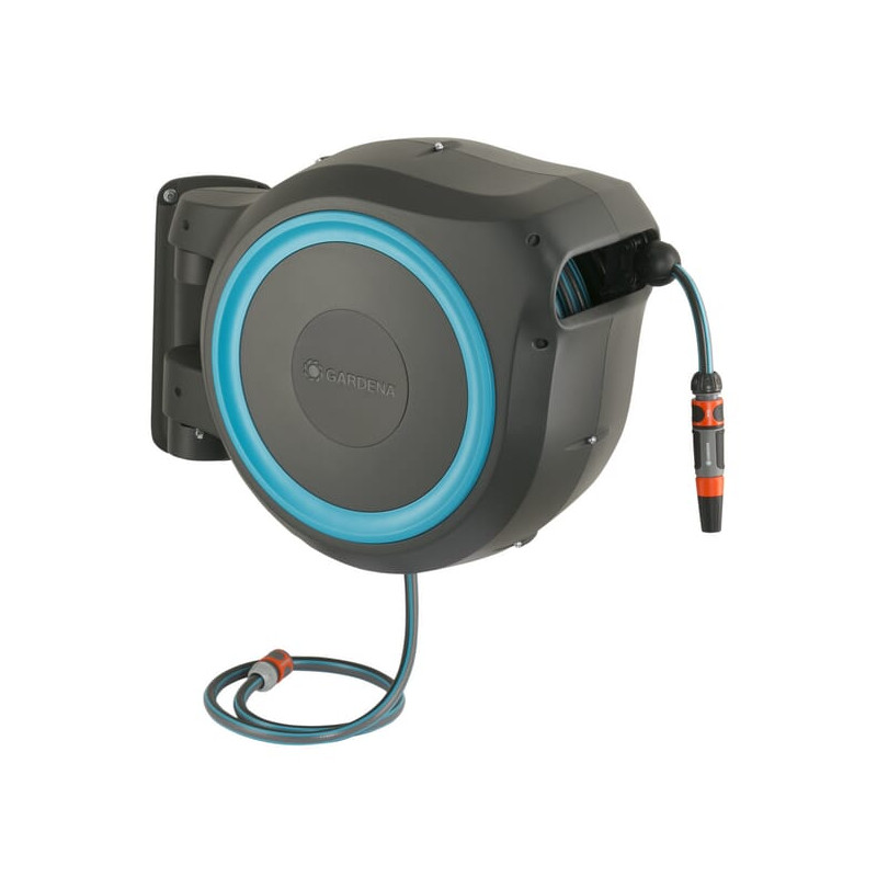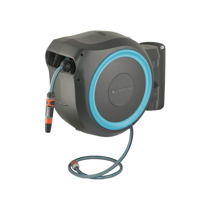 Prie sienos tvirtinama žarnos dėžė RollUp M/L, 25 m 1/2" su purkštuvu GA18620