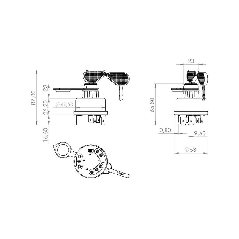 Massey Ferguson 3120T SW10009KR Užvedimo jungiklis su rakteliu, 12/24V, 4 padėtys, 16A, ašmenų gnybtai