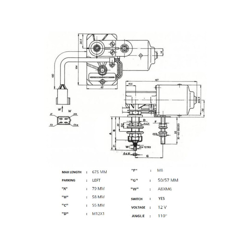 Massey Ferguson 374H 3311910M91N Valytuvo variklis 12V 110° Ø8mm su jungikliu