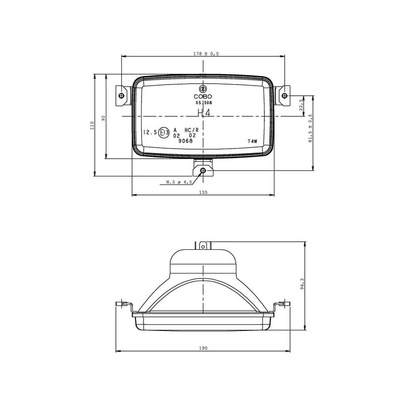 Massey Ferguson 3455 05630000 Priekinių žibintų įdėklas Halogeninis, stačiakampis, skaidrus, 155x96,3x92mm, Cobo