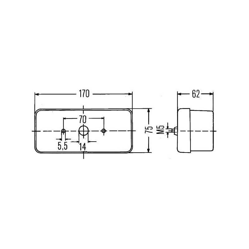Massey Ferguson 254S 2SD002582011 Galinis žibintas LH stačiakampis, 12/24V, raudona/oranžinė, užsukamas, 170x62x75mm, Hella