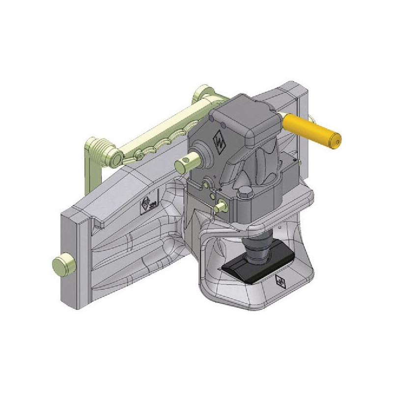 Technical infoRigid trailer coupling with horizontal hole pattern 80 mm bore For attaching to height adjustable support Automatic head with Dome headed pin, without remote control German type
