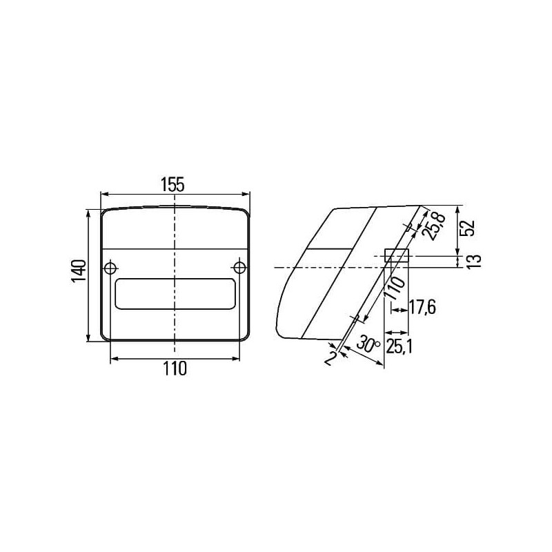 New Holland TVT190 2SE996030011 Rear light LH square, 12V, red/orange, bolt on, 155xHella